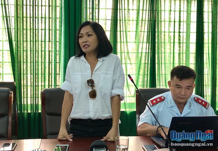 | Ca sĩ Phương Thanh trả lời các câu hỏi của các ban, ngành tỉnh Quảng Ngãi. |