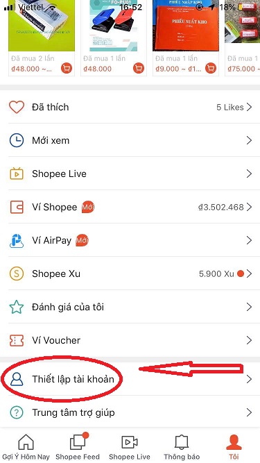 2/ Từ mục "TÔI", nhấn vào mục "THIẾT LẬP TÀI KHOẢN"