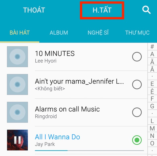Bước 5: Máy sẽ dẫn về các bài nhạc được cất trong ứng dụng nghe nhạc.