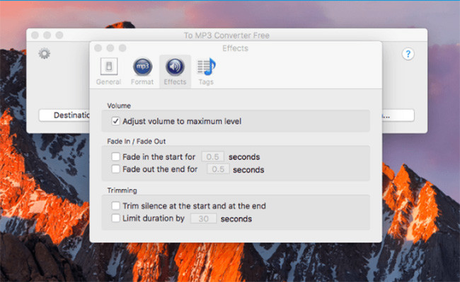 To MP3 Converter Free là một trong những chương trình xử lý âm thanh phổ biến nhất và có tính thiết thực cao trong hệ thống Mac Store, có thể chuyển đổi 200 audio và video sang MP3 cùng một lúc. Dĩ nhiên, phần mềm còn hỗ trợ định dạng âm thanh FLAC và quá trình tạo ra sự chuyển đổi đó không thể đơn giản hơn. Thêm vào đó phần mềm cho phép bạn tùy chỉnh âm thanh đầu ra từ bitrate cố định cho tới bitrate biến thiên, chuyển đổi các thẻ từ định dạng gốc và điều chỉnh âm lược để đạt mức tối đa.