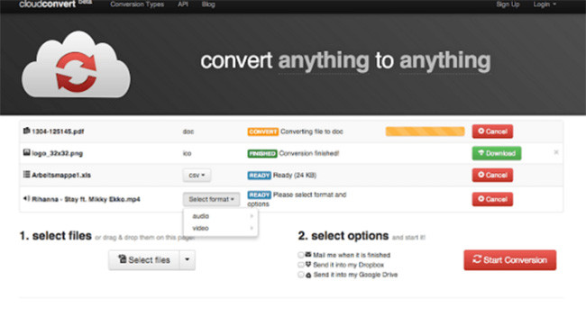 Cloud Converter không chỉ chuyển đổi các định dạng âm thanh mà còn hỗ trợ chuyển đổi nhiều định dạng file khác nhau từ tài liệu văn phòng, video, hình ảnh, ebook và một loạt danh sách các nội dung khác. May mắn thay, Cloud Converter còn xử lí file FLAC và MP3 vô cùng dễ dàng. Thậm chí nếu bạn sử dụng Cloud Convert cho lưu trữ đám mây như Google Drive các tập tin có thể được tự động tải lên, mở ra một tính năng mới tuyệt vời cho người dùng Chromebook.
