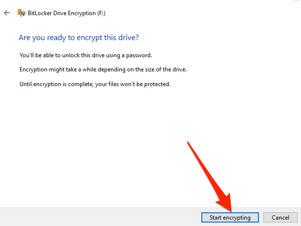 BitLocker sẽ bắt đầu mã hóa ổ đĩa khi bạn chọn Bắt đầu mã hóa cái nút.