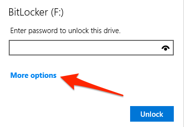 Cắm ổ đĩa vào PC của bạn và đợi cửa sổ nhập mật khẩu BitLocker xuất hiện trên màn hình. Lựa chọn Lựa chọn khác và chọn Nhập khóa khôi phục.