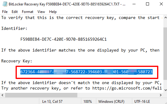 Đi đến vị trí bạn đã lưu tệp khôi phục, bấm đúp vào tệp văn bản để truy cập nội dung của nó và sao chép các số trong chìa khóa dự phòng phần.