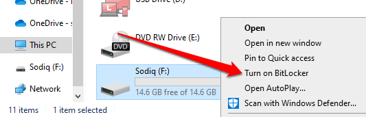 Khởi chạy File Explorer, bấm chuột phải vào ổ đĩa ngoài và chọn Bật bitlocker.