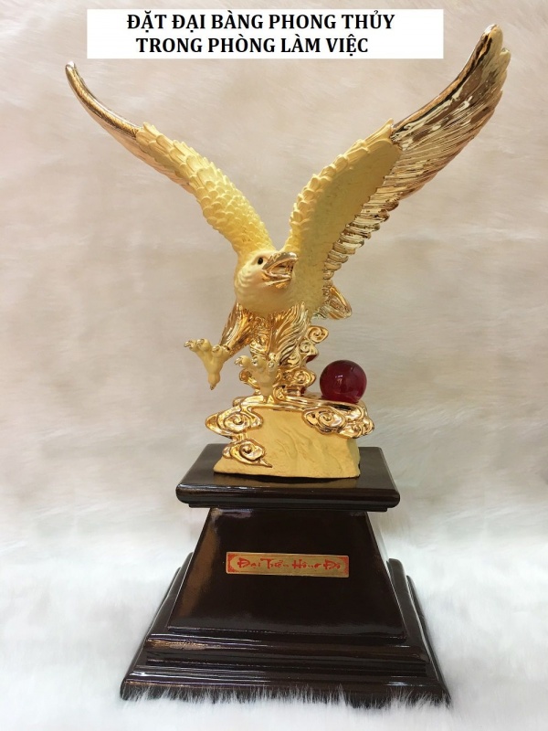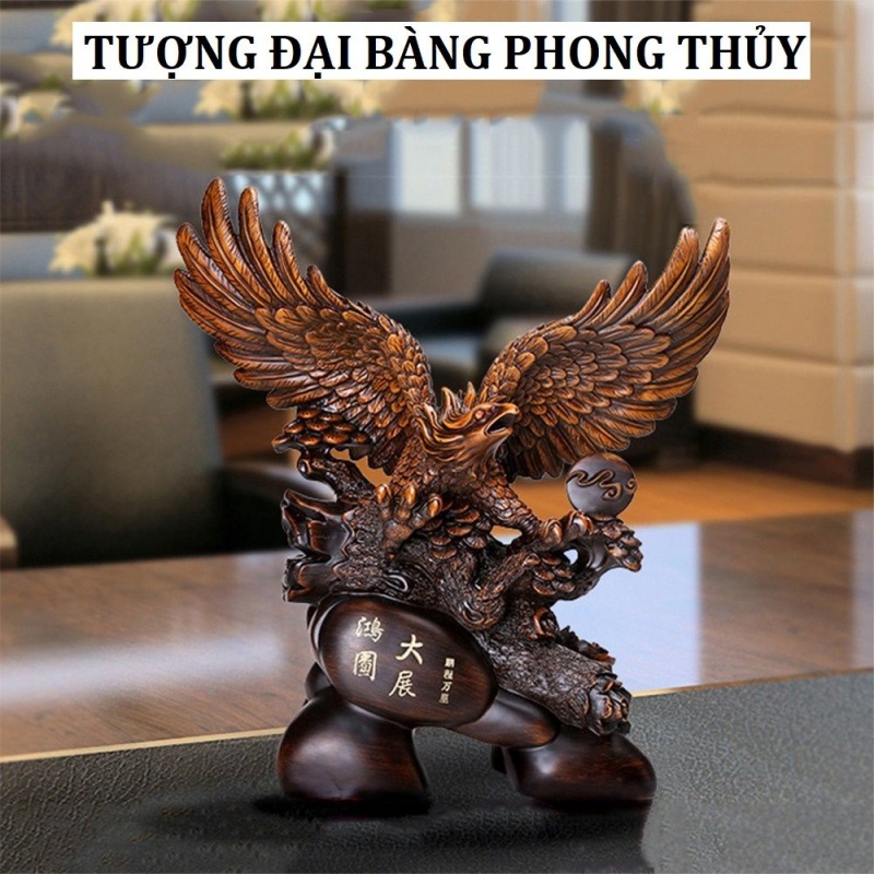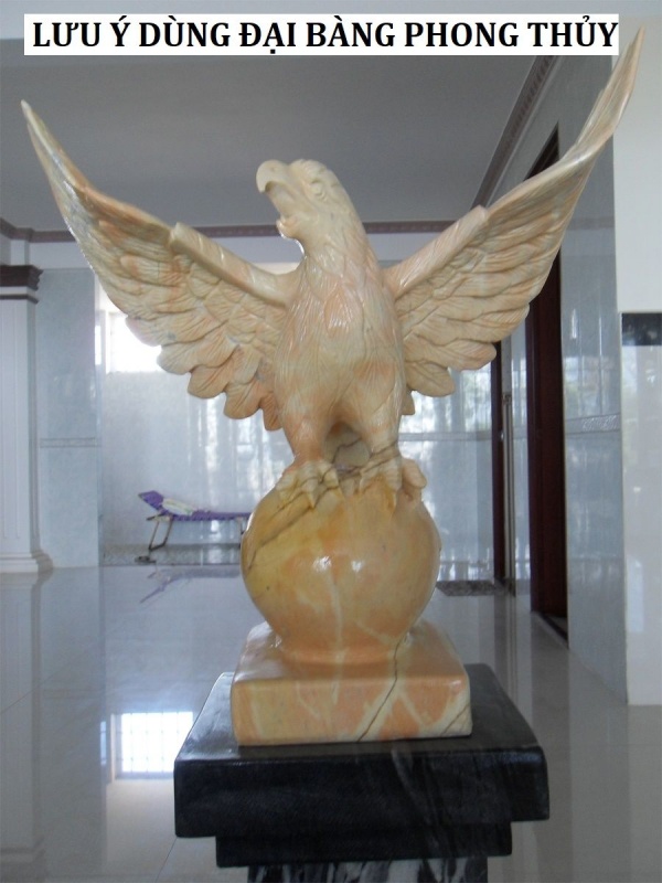 - Tượng đại bàng phong thủy gỗ, đồng, vàng là tốt nhất, đôi cánh tung cao càng tích hợp được năng lượng. Không nên dùng hình ảnh đại bàng phong thủy tung móng vuốt, ăn mồi,...