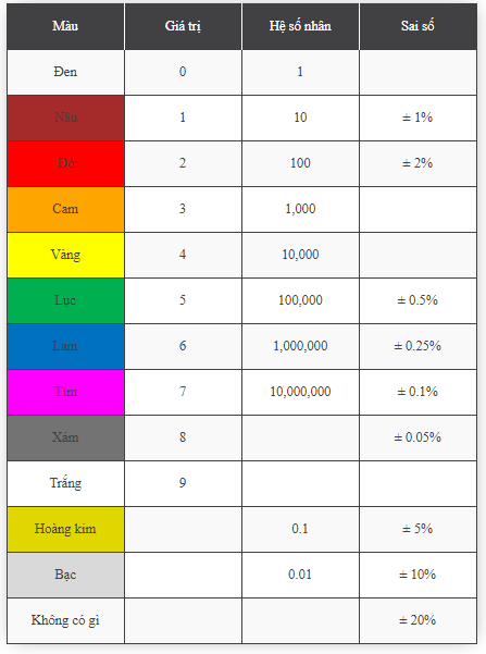 Tìm Hiểu Về Bảng Màu điện Trở, Cách đọc Và Tính Giá Trị