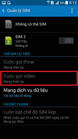 Bước 1: Việc đầu tiên các bạn cần làm là lựa chọn sim mà bạn sử dụng để gọi video Để lựa chọn sim gọi video thì các bạn vào Cài đặt Sim và chọn. Ở đây thì chỉ có một sim thì mặc định gọi video sẽ là sim đó.