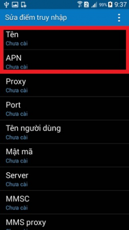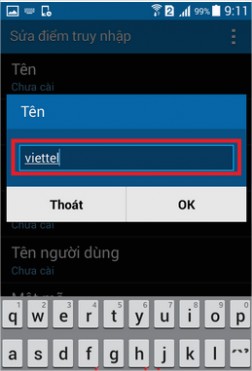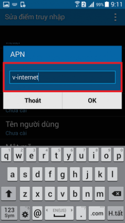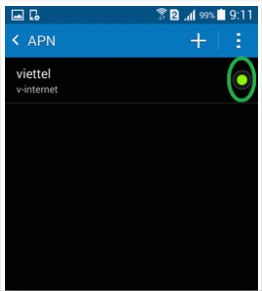 – Đối với nhà mạng Viettel: APN: v-internet – Đối với nhà mạng Mobifone: APN: m-wap – Đối với nhà mạng VinaPhone: APN: m3-world – Đối với nhà mạng Vietnamobile: APN: internet – Đối với nhà mạng Beeline: APN: internet – Ở đây nhà mạng nhà mạng Viettel nên APN là : v-internet Sau khi thiết lập xong, các bạn sẽ bấm vào nút ba chấm ở góc phải màn hình và nhấn vào nút Lưu
