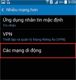 Sau khi thực hiện xong, các bạn sẽ tiến hành gọi thử. Nếu chưa thành công, ta lại phải thực hiện bước tiếp theo dưới đây. Bước 3: Đây là bước cài đặt cấu hình APN cho Sim Bước này được thực hiện để dành cho các điện thoại không tự động nhận cấu hình tự động. Có nhiều cách để cài đặt APN cho Sim, các bạn có thể tham khảo trên mạng. Còn dưới đây, mình sẽ hướng dẫn các bạn cách cài đặt APN cho Sim theo cách thủ công. Từ mục Các mạng di động bạn chọn Điểm truy cập