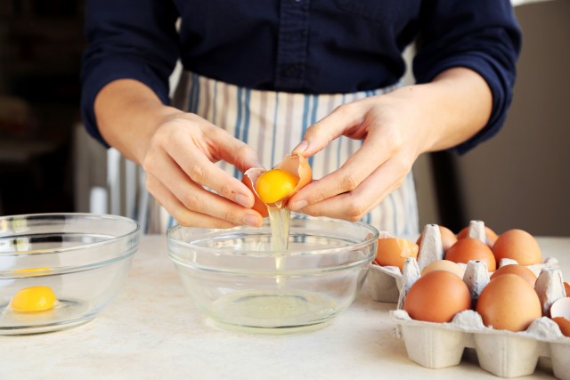 - Bước 1: Tách lòng trắng trứng và lòng đỏ ra 2 tô riêng, nhỡ có vương xíu lòng đỏ vào lòng trắng cũng không sao nhé.