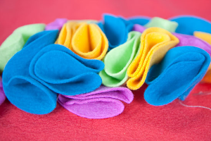 Bạn cần chuẩn bị những nguyên vật liệu như sau:- Vải: nên chọn vải dạ, vải thun hay những vải không xổ sợi, nếu là vải voan hay lụa thì cần hơ lửa mép vải sau khi cắt.- Kéo, kim, chỉ.