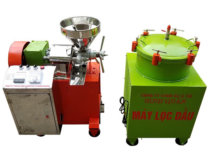 - Bộ lọc dầu được thiết kế hiện đại cải thiện lượng dầu sau ép đạt chuẩn. Thích hợp cho các hộ gia đình hay cơ sở kinh doanh dầu lạc nguyên chất hay mở dịch vụ ép dầu thuê.
