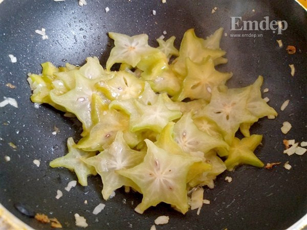 Bước 3: Để một ít dầu ăn trong chảo, cho hành khô vào xào thơm, tiếp đó đổ khế chua vào xào khoảng 3 phút.