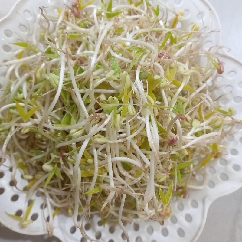 Giá đỗ ngâm trong nước rồi vớt bỏ hết vỏ đậu, rửa giá lại 2 lần nước cho sạch, để ráo.