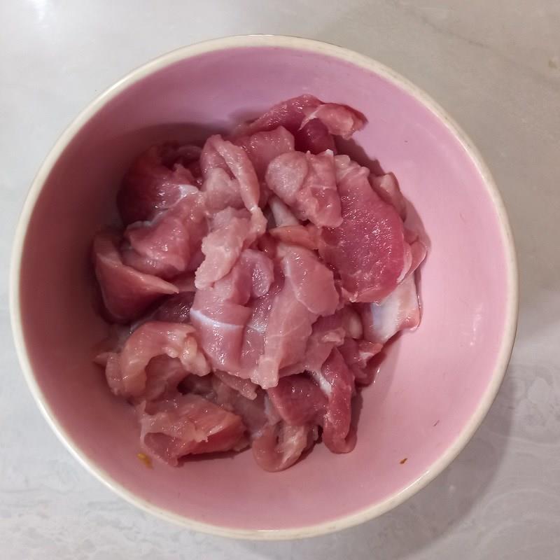 Dùng muối xoa bóp thịt lợn khoảng 2 - 3 phút rồi xả dưới vòi nước cho thật sạch, cắt thịt thành miếng mỏng vừa ăn.