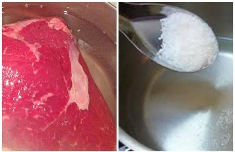 Rã đông bằng muối Ngoài đường bạn có thể rã đông thịt bằng nước muối pha chút giấm. Cho nước lạnh vào tô bạn bỏ chừng 2 thìa muối nhỏ cùng vì giọt dấm trắng, khuấy đều hỗn hợp, bạn đã có một loại dung dịch để bỏ miếng thịt vào. Chờ khoảng 10 phút bạn cũng sẽ có kết quả tốt là miếng thịt vẫn ngon tươi mềm mại. Cách rã đông này bạn nên dùng cho thực phẩm là cá, hải sản đông lạnh. Nước muối gần giống như nước biển mặn khi bạn bỏ cá, hải sản vào.