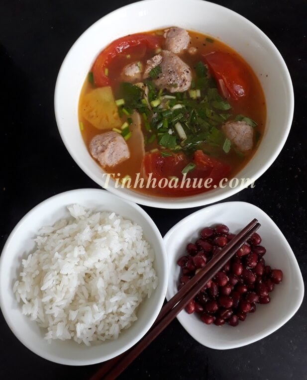 => Nêm nếm lại cho vừa miệng, nếu canh chưa đủ chua thì thả 1 chút me chua vào, nếu vừa miệng rồi thì thôi vì cơ bản măng, thơm và cà chua khi nấu lên cũng đã có độ chua nhẹ rồi.