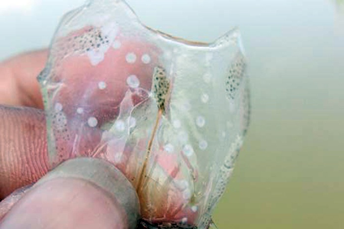 Nhận biết và xử lý kịp thời nấm đồng tiền trong ao nuôi tôm lót bạt
