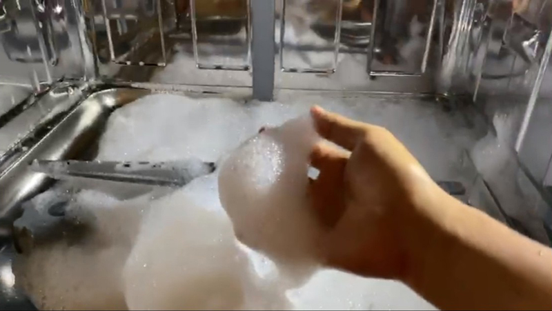 Và điều gì sẽ xảy ra nếu chúng ta sử dụng nước rửa chén thông thường cho máy rửa chén? Kết quả là Chúng ta sẽ có 1 chiếc máy rửa chén chứa đầy bọt. Và nếu anh chị nào lỡ cho nước rửa chén thông thường vào máy rửa chén, thì việc đầu tiên là chúng ta phải hốt hết bọt và lau sạch lồng rửa bằng khăn, sau đó cho máy chạy không tải (cho máy chạy mà không có chén đĩa) khoảng 3-5 chu trình rửa cho tới khi nào máy đẩy hết bọt trong đường ống ra ngoài, thì chúng ta có thể sử dụng lại bình thường.
