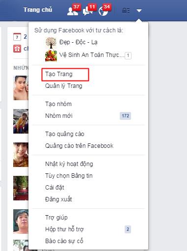 - Cách thứ nhất là click vào nút mũi tên chỉ xuống ở phía trên ngoài cùng bên tay phải rồi click tiếp vào lựa chọn Tạo trang.