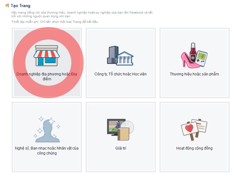 Hiện nay Facebook cho phép bạn lựa chọn 6 hình thức tạo trang trên Facebook, tuy nhiên để tạo Fanpage bán hàng, bạn chỉ cần quan tâm đến mục Doanh nghiệp địa phương hoặc Địa điểm và Thương hiệu hoặc Sản phẩm. Nếu bạn có cửa hàng hay địa chỉ cụ thể và muốn xây dựng thương hiệu dựa trên địa chỉ thì có thể chọn Doanh nghiệp địa phương hoặc Địa điểm. Mặc dù vậy, đa phần khi tạo Fanpage Facebook bán hàng hiện nay, các cửa hàng, doanh nghiệp thường chọn mục Thương hiệu hoặc Sản phẩm.