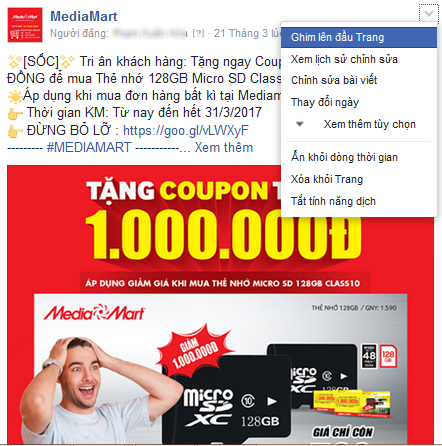 Ngoài ra, khi đăng bài viết cần lựa chọn thời điểm đăng bài thích hợp dựa trên đối tượng khách hàng hướng đến và nhanh chóng trả lời bình luận của thành viên, kích thích các thành viên thích hoặc chia sẻ bài viết. Nếu có bài viết cần chia sẻ hoặc muốn các thành viên quan tâm khi truy cập vào Fanpage Facebook bán hàng của bạn, bạn cần ghim bài viết lên đầu trang với thao tác ấn vào nút mũi tên chỉ xuống ở góc phải bài viết và chọn Ghim lên đầu.