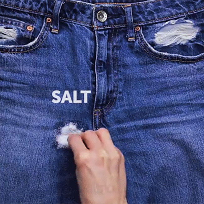 Tẩy vết màu thức ăn trên quần jean bằng muối