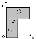 4 tách ra. Cơ thể được chia thành một số phần hữu hạn, với mỗi phần là vị trí của trọng tâm C và khu vực S đã biết. Ví dụ, hình chiếu của một cơ thể lên một mặt phẳng xOy (Hình 1.8) có thể được biểu diễn dưới dạng hai hình phẳng có diện tích S 1 và S 2 (S = S 1 + S 2 ). Trọng tâm của các hình này nằm ở điểm C 1 (x 1 , y 1 ) và C 2 (x 2 , y 2 ) . Khi đó tọa độ trọng tâm của vật là