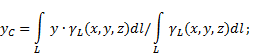 Đối với tọa độ của trọng tâm của một đoạn thẳng đồng chất có độ dài L (Hình 1.7, b)