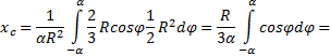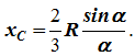 Thay vào (2) α = π / 2, ta được: x c = (4 R) / (3 π) ≅ 0,4 R .
