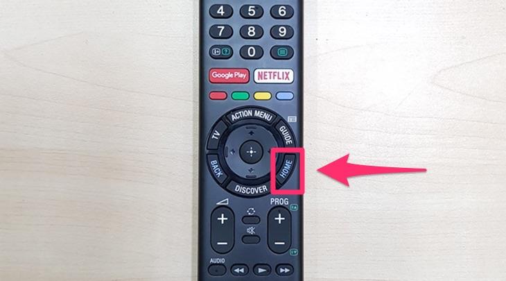 Bước 1: Bạn nhấn nút "HOME" trên remote để vào giao diện chính của Android tivi Sony.