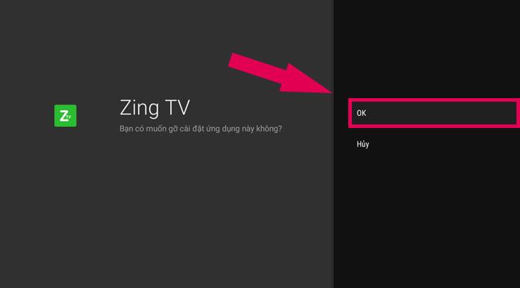 5 - Chọn "OK" để tivi xoá ứng dụng.