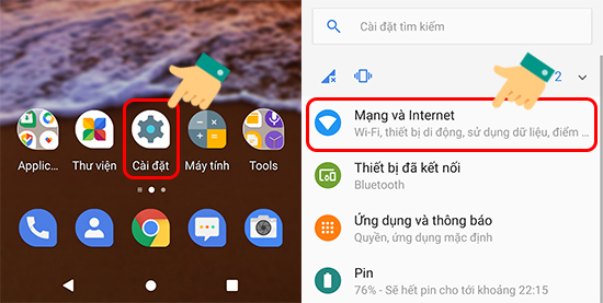 Bước 1: Bạn vào Cài đặt, chọn Mạng và Internet.