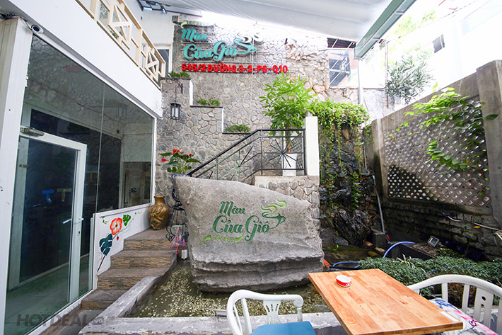 Đến với café Màu Của Gió, bạn như lạc vào một “cõi riêng” của lãng du, của gió trong lòng phố. Quán được thiết kế theo lối mở, nổi bật với không gian sân vườn xanh mát, nhiều loại cây cỏ. Từ bờ tường phủ đầy giàn dây leo xanh ươm rợp bóng mát, đến lối đi lát đá nhỏ xinh, những bông hoa đầy màu sắc sặc sỡ khoe mình trong nắng… Từng chi tiết, bối cảnh như các mảnh ghép tạo nên một cõi du miên đích thực, có thể khiến bất kỳ ai đặt chân đến cũng có cảm giác “phải lòng”. Khiêm tốn và khá bình dị, thế nhưng, quán vẫn có một vị trí khá đặc biệt đối với những ai yêu thích “gu” cà phê độc đáo.