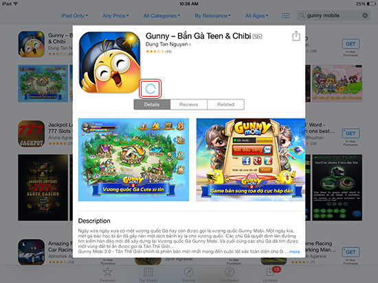 Bước 4: Ngay sau đó, hệ thống sẽ tiến hành tự động tải và cài đặt Gunny Mobi trên thiết bị iOS của bạn.