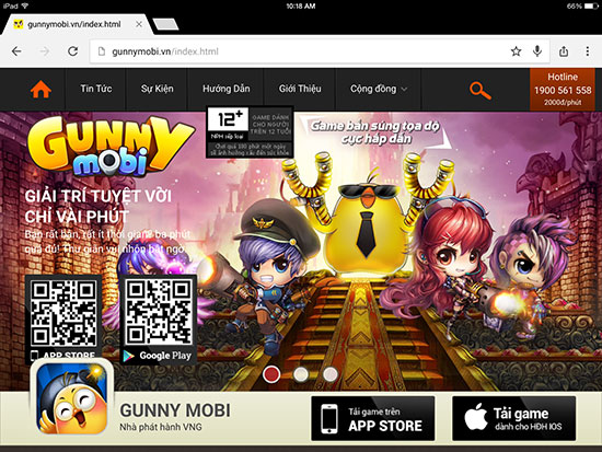 Bước 1: Đầu tiên bạn hãy dùng Iphone hoặc Ipad truy cập vào website của Gunny Mobi theo địa chỉ: http://gunnymobi.vn