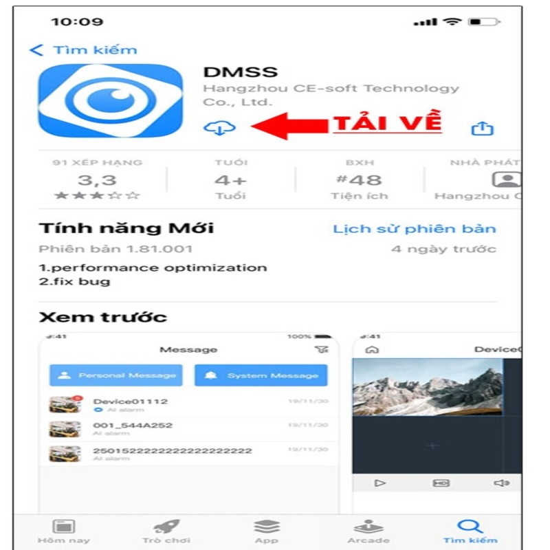 Nếu bạn dùng điện thoại iphone có hệ điều hành ios thì vào Appstore, tìm ứng dụng DMSS để tải về.