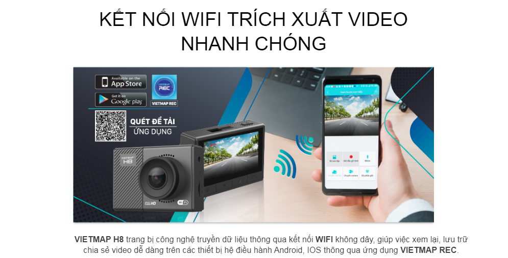 CAMERA HÀNH TRÌNH VIETMAP H8 - KÊNH TRƯỚC KẾT NỐI WIFI