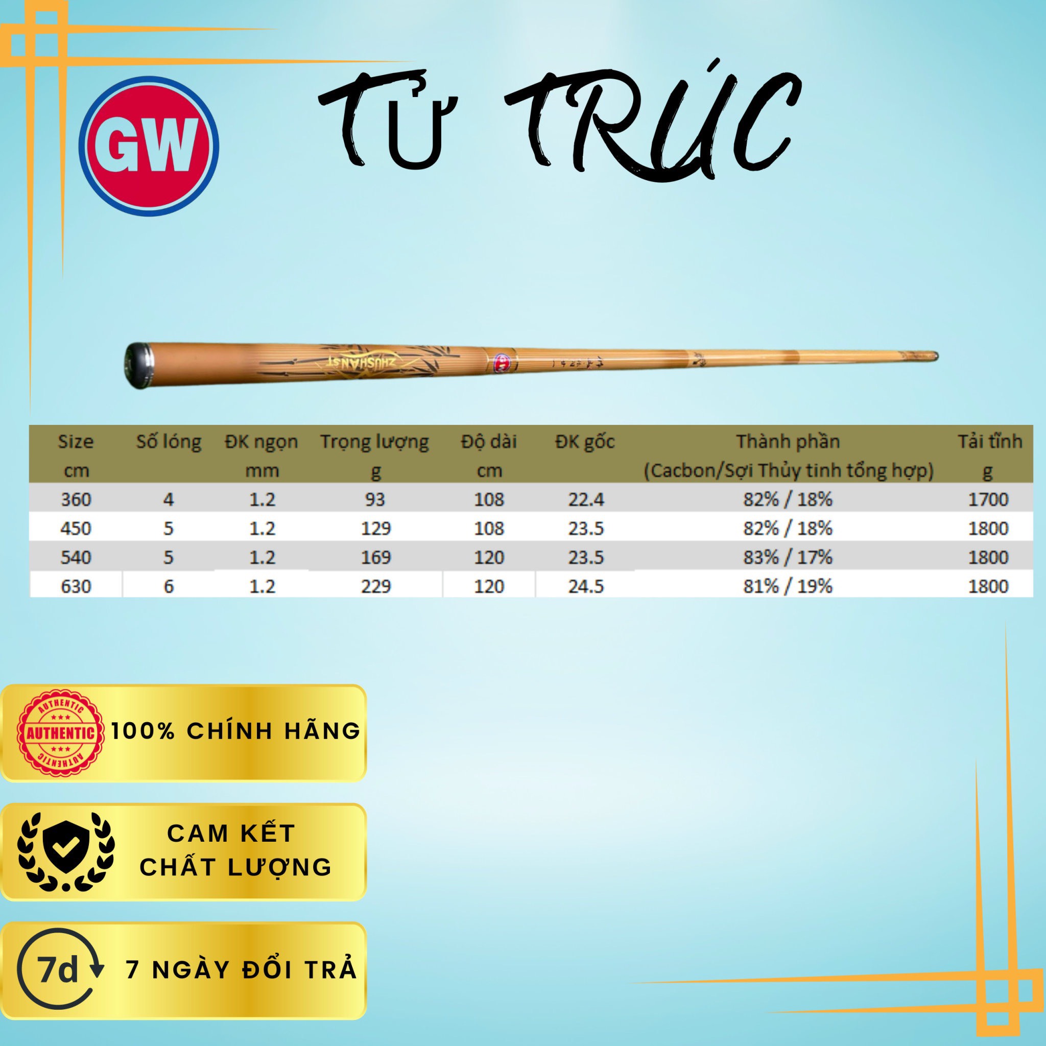 Cần Câu Tay GW Tử Trúc Chính Hãng - 3m6 4m5 5m4 6m3 7m2
