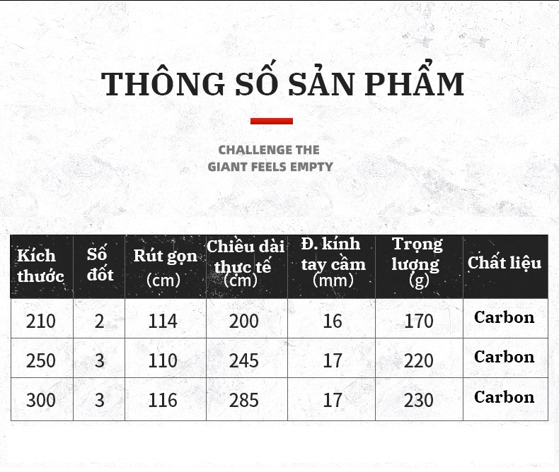 CÁN VỢT CARBON – HANDING # H0402CW656H (2.4m - 2.7m - 3m)