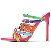 iiimmu 3.5 IN Stiletto Mules High Heels with Pointed Peep Toe Heeled Sandals Faux Leather 1,716,390đ
