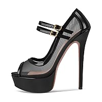 onlymakerheels Women's Platform Sandals Mesh Ankle Strap Stiletto High Heels Open Toe Peep Toe 1,853,636đ