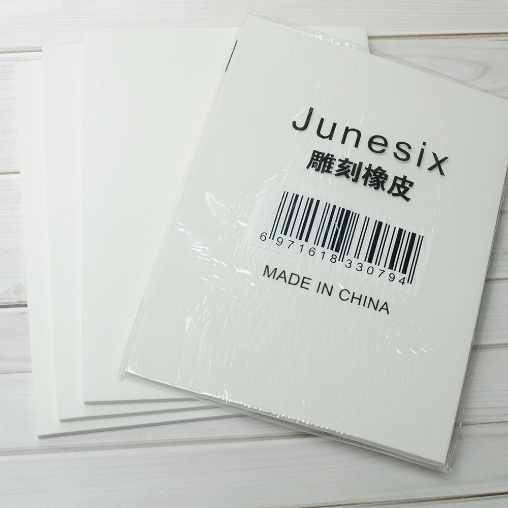 Miếng cao su có kích thước 15x10x0.8cm và 20x15x0.8cm, màu trắng trơn, sử dụng cùng với các loại dao khắc cao su chuyên dụng để tạo ra các con dấu handmade độc đáo.