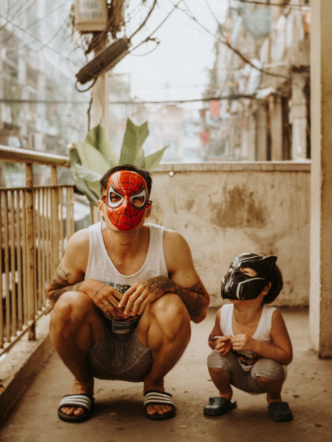 Bố trẻ giải thích: "Để hai bố con có ảnh đẹp thì mẹ phải hi sinh làm nhiếp ảnh rồi. Các concept ảnh đều do mình và bé nghĩ ra. Thông qua những bức ảnh, mình muốn nhắn gửi đến các cha mẹ (đặc biệt là các ông bố) nên hiểu và chơi với con nhiều hơn, cùng quậy với nó nhiều hơn và chia sẻ các kinh nghiệm của một "ông bố bỉm sửa" với tụi nhỏ. Bố hay mẹ bình đẳng trong việc nuôi dạy con, đều phải chia sẻ việc chăm sóc con".