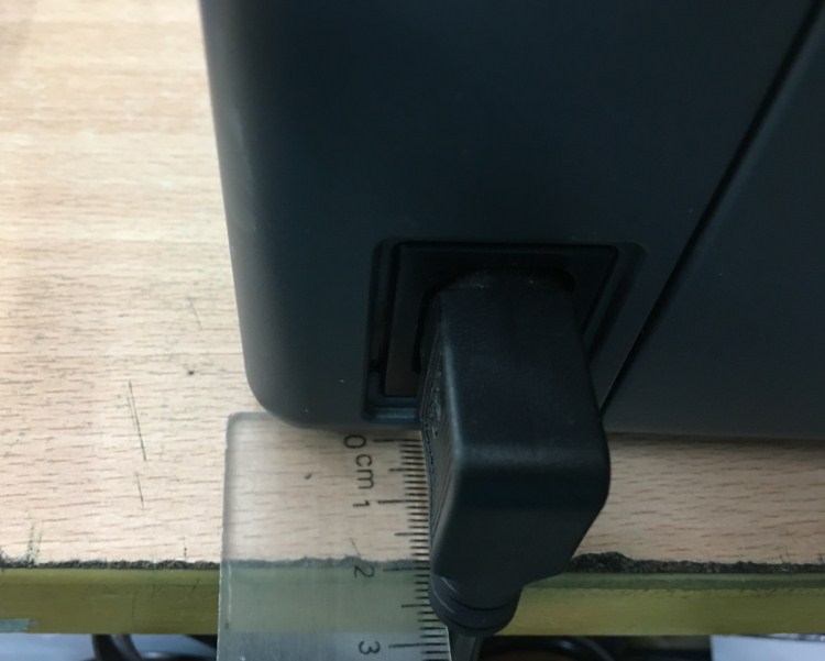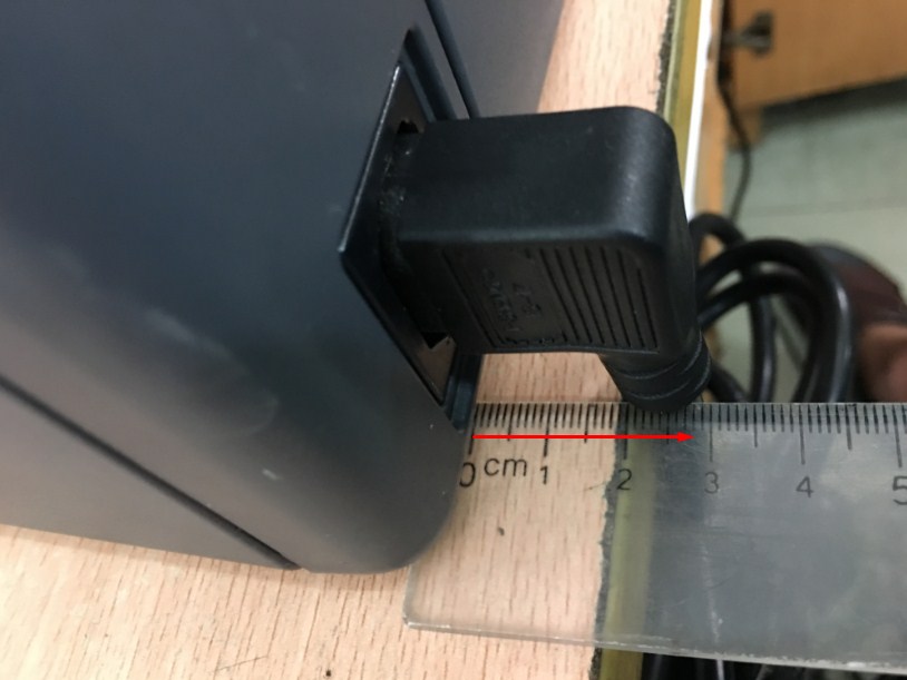 Khoảng trống để cắm cáp chữ L 90 độ vuông sang góc trái Kết nối USB và dây nguồn điện là 2.5Cm
