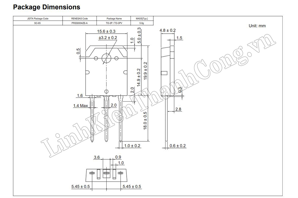 - Kiểu chân cắm: TO-3P