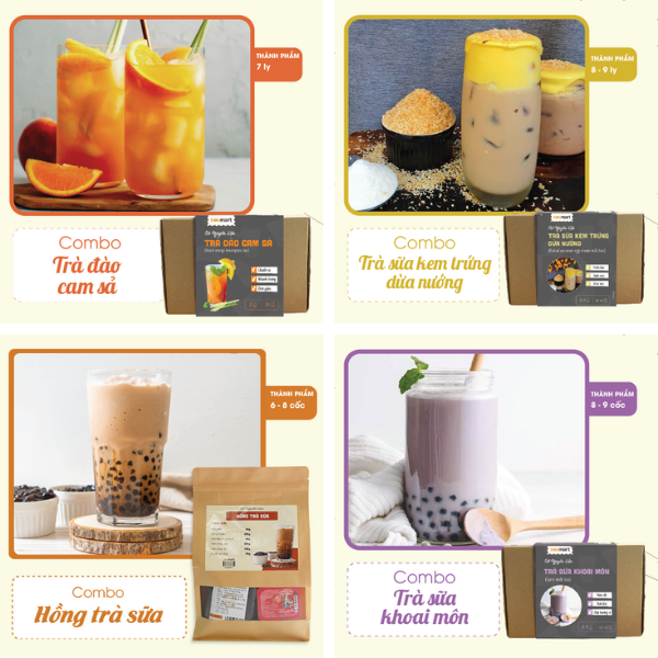 Hiện tại Beemart có rất nhiều Combo pha chế đảm bảo chất lượng gồm đầy đủ nguyên liệu cùng hướng dẫn chi tiết giúp bạn thành công ngay lần làm đầu tiên.