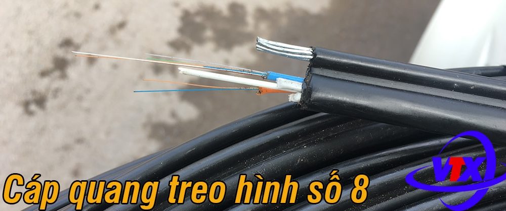 Cáp quang treo 12FO được cấu trúc theo hình số 8. Đây là loại cáp quang phổ biến nhất và thường gặp nhất, bạn có thể bắt gặp ở mọi nơi, mọi chỗ. Đúng như tên gọi của nó, cáp quang treo có dạng hình số 8, gồm phần cáp phi kim loại và phần dây treo kim loại gắn liền với nhau, được sử dụng để treo trên cột ngoài trời.