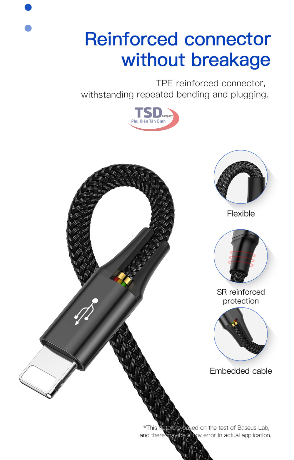 - Dây cáp có thiết kế đẹp, chắc chắn và sang trọng. Các đầu cổng giao tiếp làm bằng hợp kim cao cấp, chống rỉ sét giúp cho việc giao tiếp và truyền tải dữ liệu được tốt và ổn định hơn.